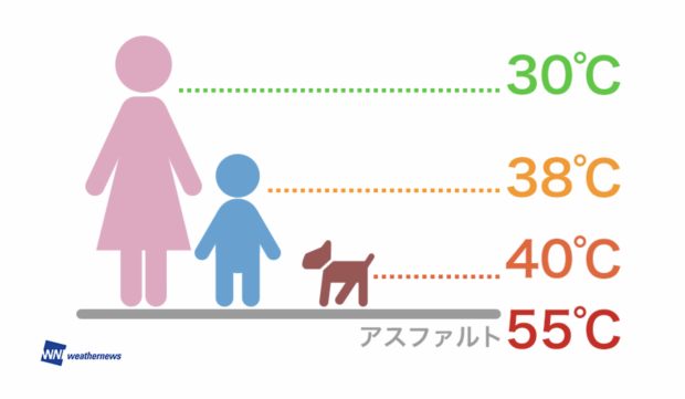 気温が30℃でも、地面に近いとさらに高温となっていることはよくあります。