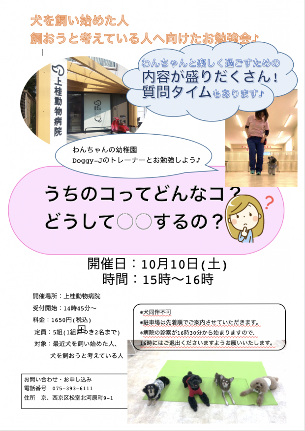 1回目のお勉強会はこれからわんちゃんを迎えようと思われてる方、迎えたばかりの方を対象に開催いたします。